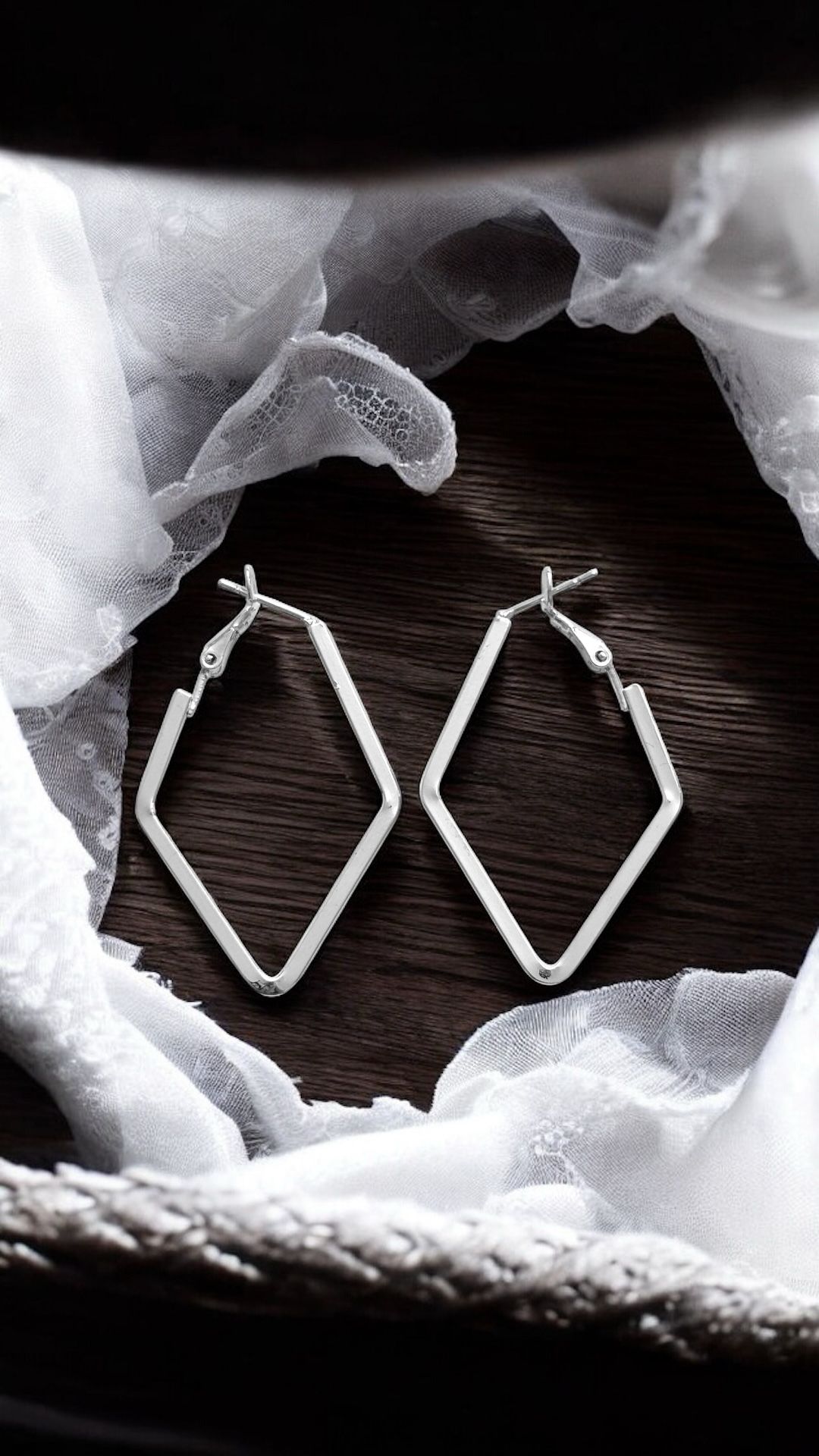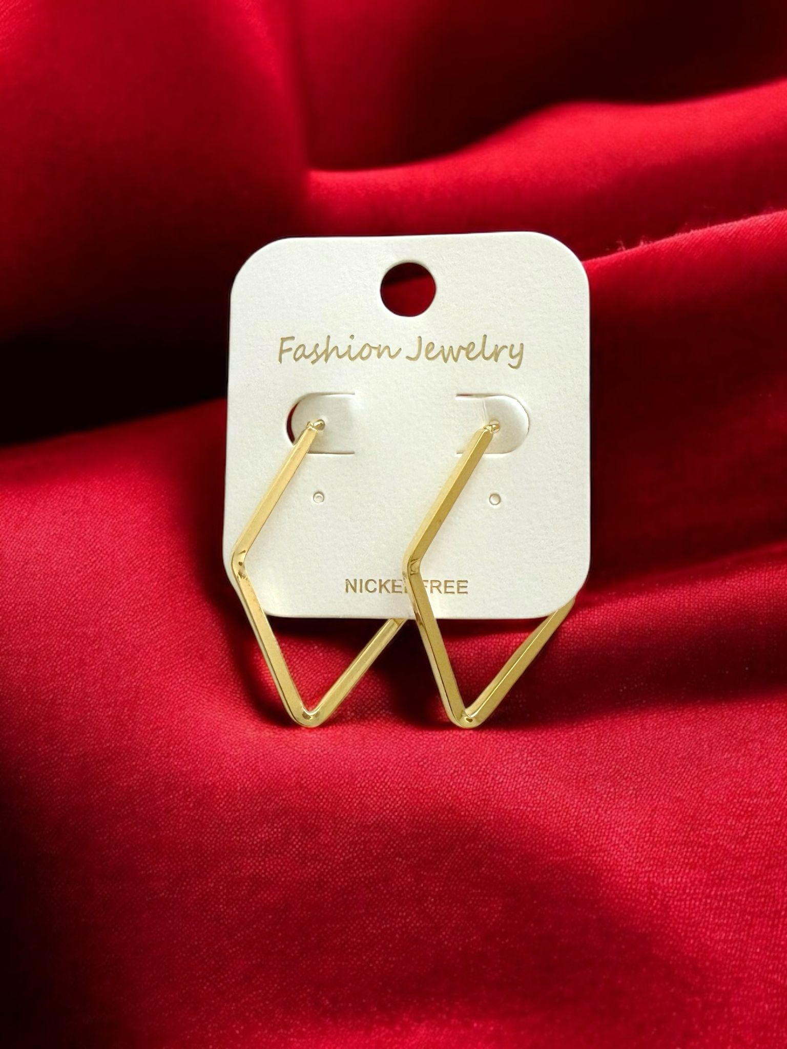 עגילי חישוק בצורת מעוין שילוב מושלם של קווים נקיים ועיצוב גיאומטרי מראה מודרני קליל ומרשים לכל הופעה. קיימים בציפוי זהב או כסף לבחירה