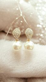 עגילי יוקרה שמשלבים אלגנטיות ונוכחות-עם טיפה מנצנצת משובצת זרקונים וחלק תחתון של פנינה עגולה וזוהרת.עיצוב שמחמיא לכל לוק קיים בציפוי זהב וכסף